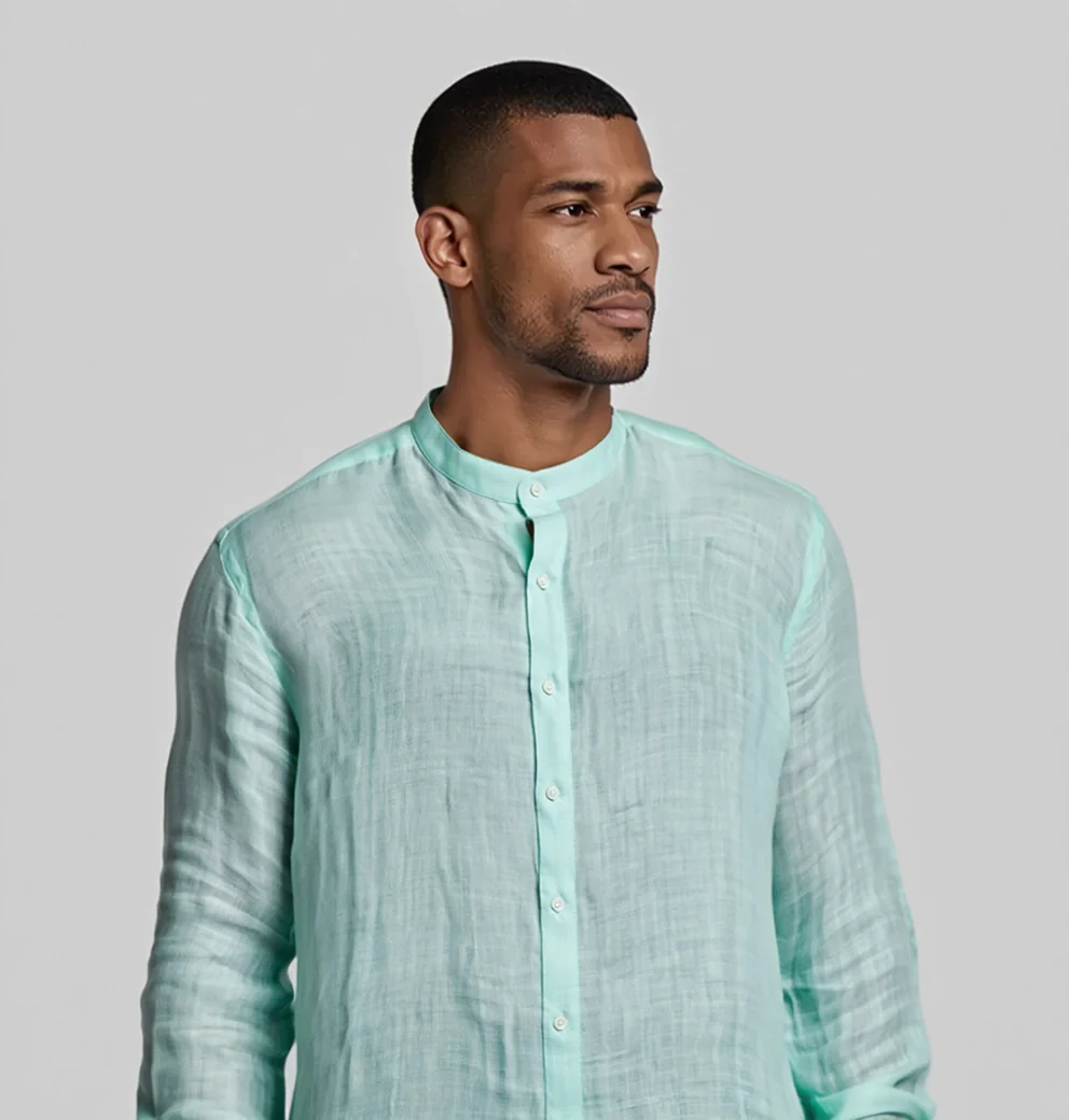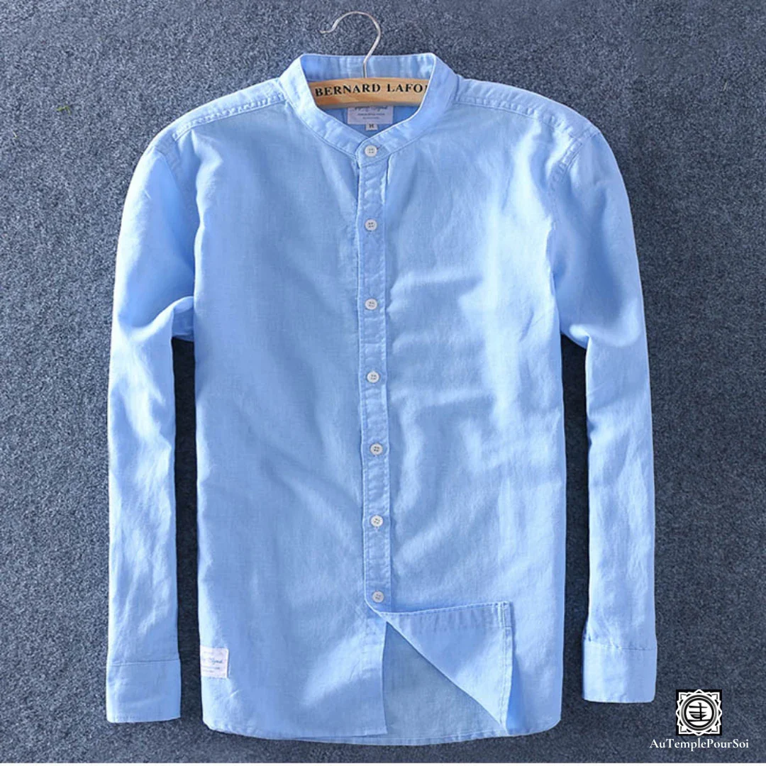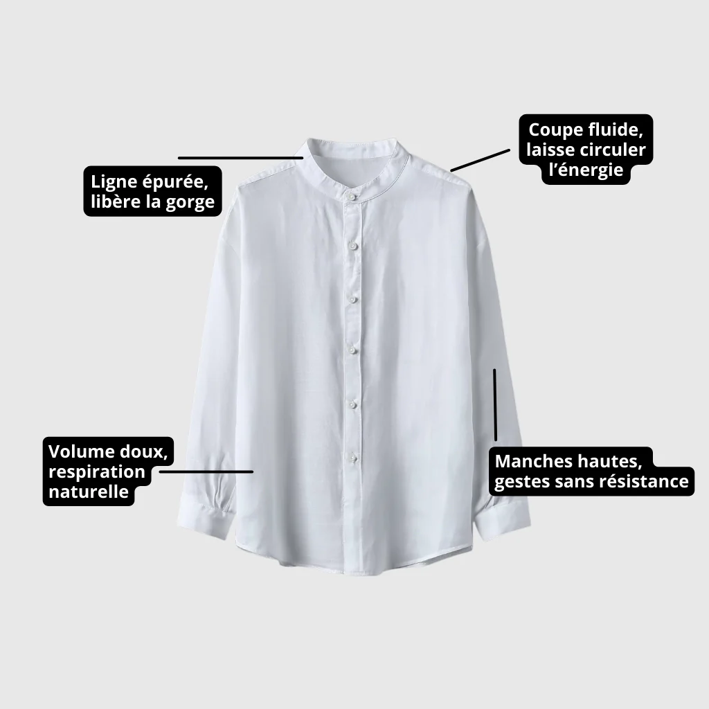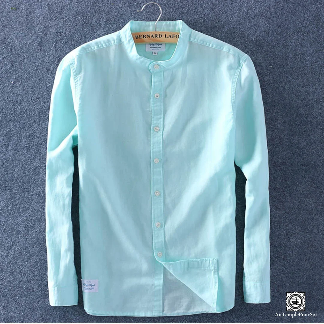 « Simplicité » Chemise en lin à manches longues à col Mao