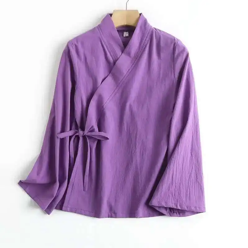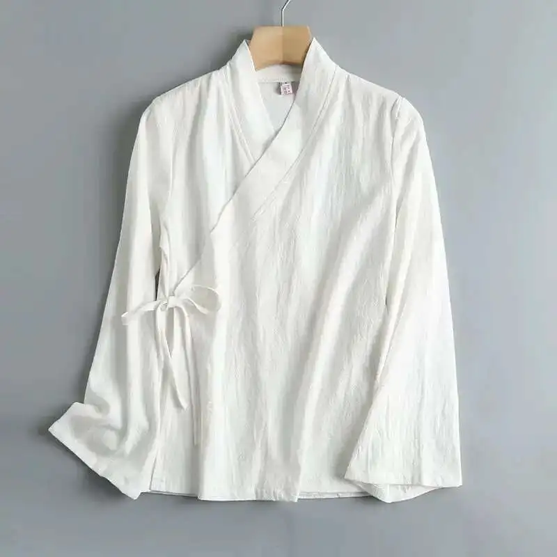 Élégante et intemporelle, la chemise femme en lin Yuki s’inspire du style traditionnel Hanfu pour offrir un vêtement unique. Sa coupe croisée avec liens à nouer sur le côté et ses manches longues évasées rappellent l’esthétique chinoise vintage tout en restant moderne et minimaliste. Confectionnée dans un coton/lin naturel, elle est respirante, douce et agréable à porter.
