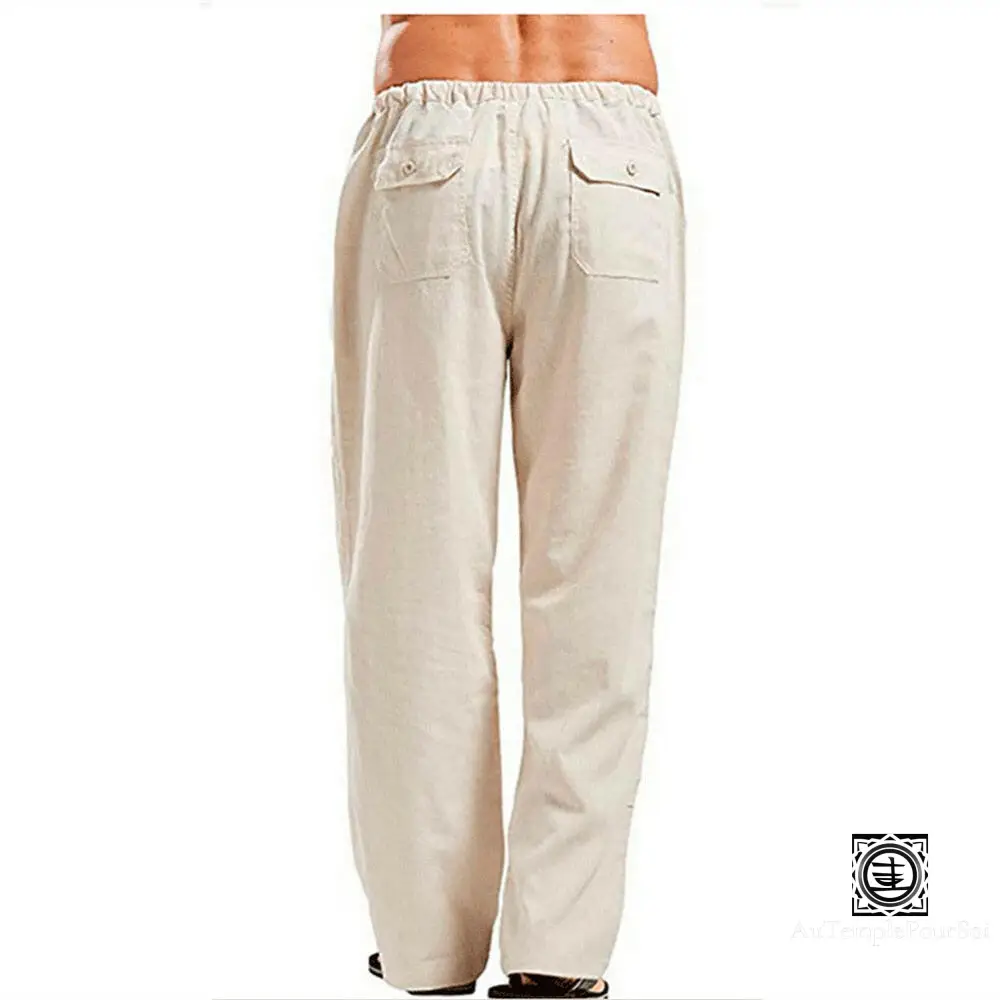 Le design épuré et minimaliste du pantalon « Zen » est parfait pour ceux qui cherchent à simplifier leur vie quotidienne. La taille élastique assure un ajustement parfait, tandis que la couleur neutre du lin ajoute une touche de sophistication à l’ensemble.