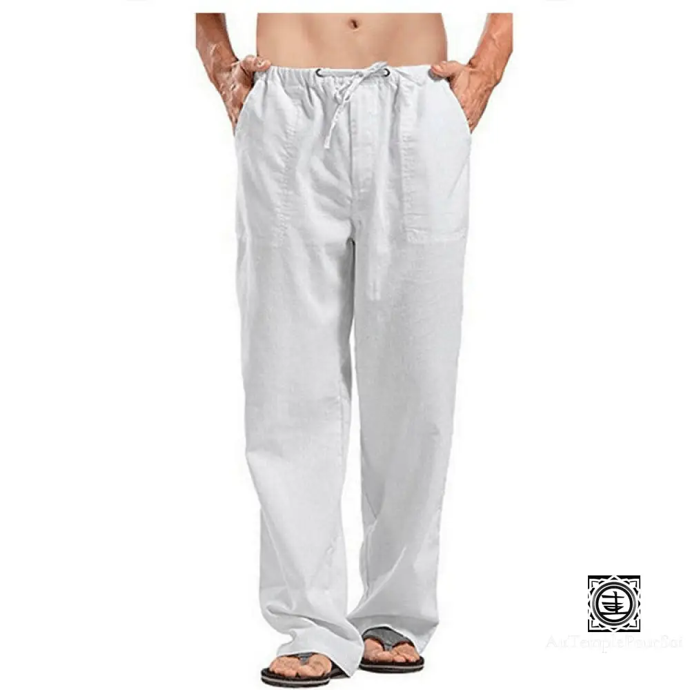 Polyvalent et facile à assortir avec d’autres éléments de votre garde-robe, le pantalon « Zen » en lin peut être porté avec un t-shirt simple pour un look décontracté, ou avec une chemise habillée pour une occasion plus formelle. Il convient également à une variété de styles, du bohème au minimaliste.