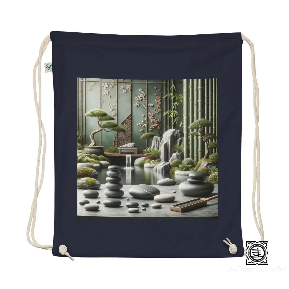 Découvrez l’élégance fonctionnelle avec notre sac Au Temple Pour Soi à cordon en coton biologique « Zen ».