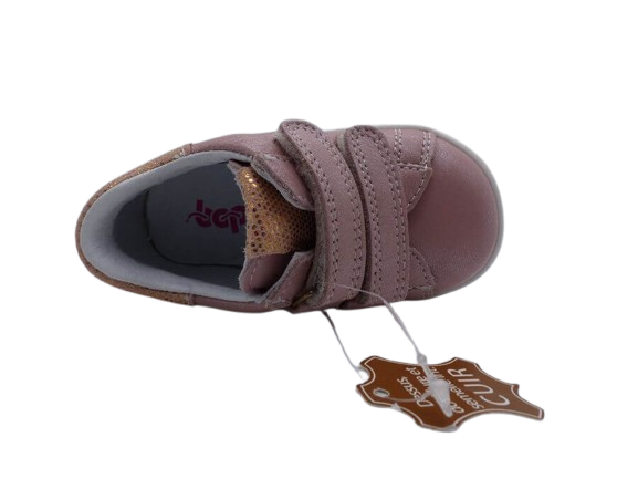 Ces basket pour bébé BOPY sont aussi stylées que confortables. Faciles à chausser grâce à leurs deux bandes scratch sur le dessus, elles enveloppent le pied de douceur grâce à leur rembourrage au talon et sur la languette.  Le chaussant convient parfaitement aux pieds un peu larges. Les couleurs bleu, blanc ou rose avec semelle blanche plairont aux enfants ainsi qu’aux mamans. Légère voute plantaire au  niveau de la semelle intérieure en cuir.