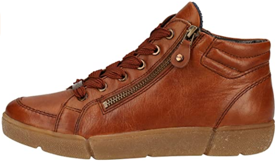 Boots femme cognac de chez ARA sobres et chics à la fois avec leur bout rond et leurs doubles surpiqûres. Le dessus en cuir lisse ultra-souple offre un excellent confort. Ces chaussures à mi-chemin entre la bottine et la basket possèdent un empiècement surpiqué sur le bout du pied. Un matelassage au niveau de la cheville pour un bon maintien. Ils se ferment par zip sur le dessus après réglage de la largeur grâce au lacet. Chaussures avec une doublure en textile chaud au niveau du pied et une semelle intérieure amovible dotée de la technologie de confort Hightsoft.