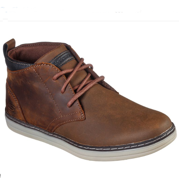 Boots homme cuir souple style clarks demi-montantes à lacets marron SKECHERS Regano