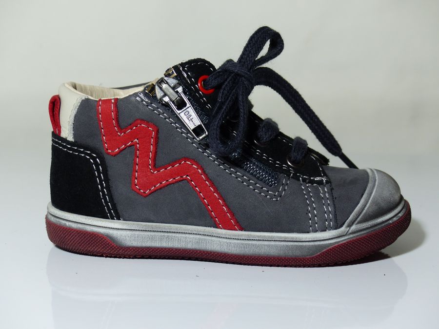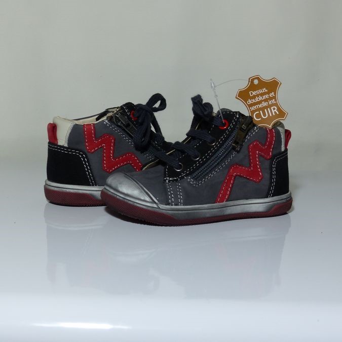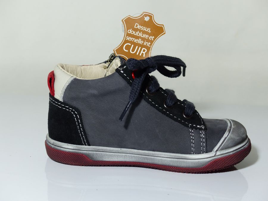 Aussi confortable que tendance, ce bottillon BOPY a tout bon. Son extérieur en cuir, décliné en gris avec une rayure fantaisie rouge, lui confère une allure sportive très actuelle. Cette chaussure garçon ne s’arrête pas là puisqu’elle combine une doublure en cuir et une semelle extérieure, en élastomère, antidérapante. La semelle remonte sur l’avant du pied afin de protéger le cuir de toute éraflure. Ces boots sont faciles à chausser grâce à leur zip sur le dessus qui vient en complément d’un lacet  pour un bon maintien.