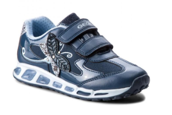 Baskets pour fille respirantes, amusantes, féminines et très confortables, dotées de lumières intégrées dans la semelle. Les Shuttle de GEOX répondent à la fois au besoin de chaussures confortables et à l’envie de s’amuser, avec un design attrayant qui séduit dès le premier regard. Leur tige est en synthétique avec un délicieux motif libellule, avec un double scratch qui assure un enfilage pratique et un chaussant réglable. Les lumières intégrées dans la semelle peuvent être réglées au moyen d’un bouton on/off.